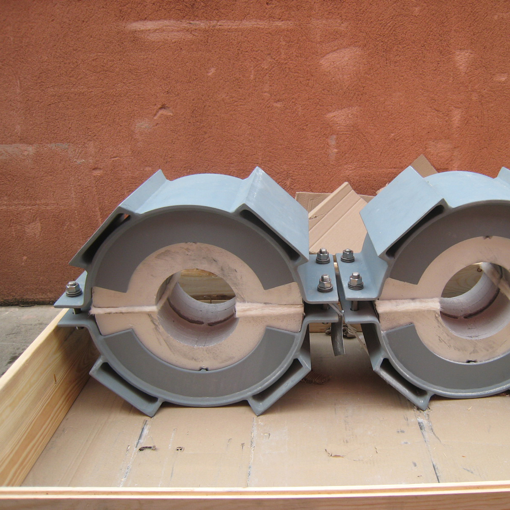 There is a wide range of designs for any given pipe size and insulation thickness combination, as well as different installation types in order to obtain a variety of functions (simple resting, guide types, axial stops, trunnion anchors, double shoes, etc.). There is also a number of material types and densities depending on the load to be supported and the degree of thermal efficiency that is required.